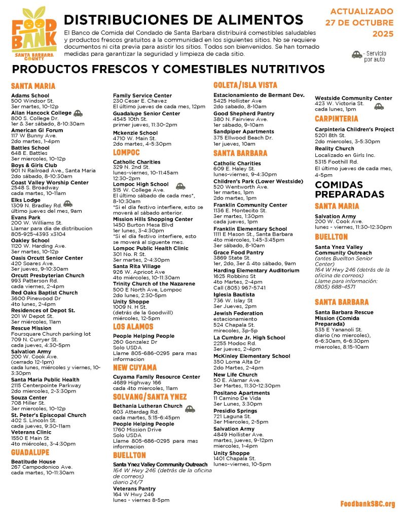 FOOD DISTRIBUTION SITES - SITIOS DE DISTRIBUCION DE ALIMENTOS