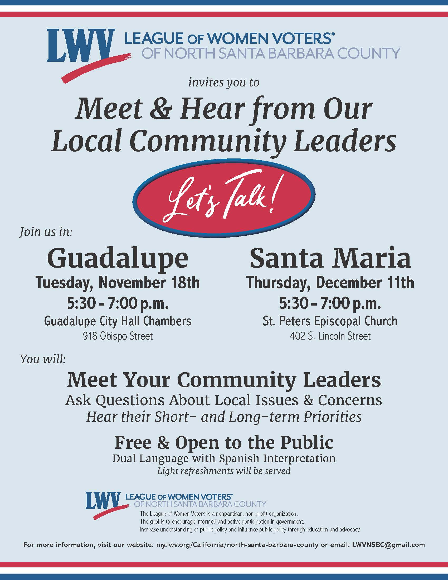 5:30 – 7:00 pm Guadalupe Council Chambers 918 Obispo Street, Guadalupe CA